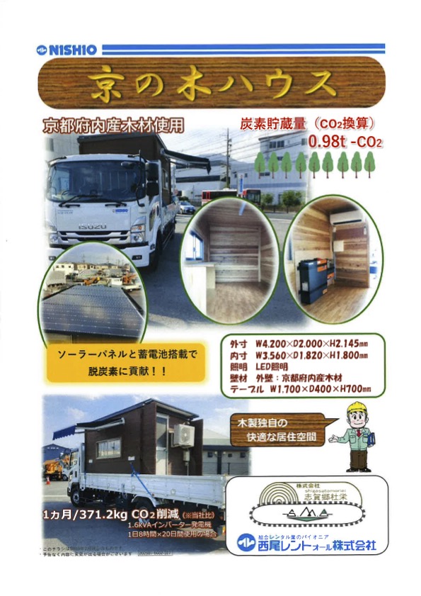 「京の木ハウス」は、京都府内産の木材を使用して製作した、トラックで運搬可能な木造ユニットです。